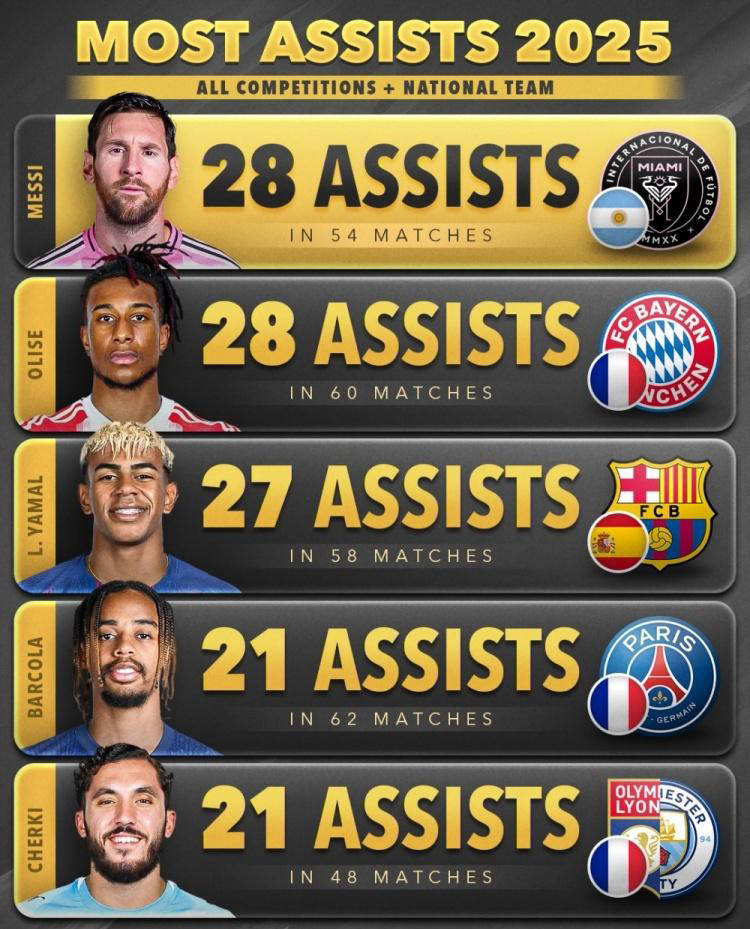梅西荣膺今年世界助攻王,已五次获得年度助攻王称号!